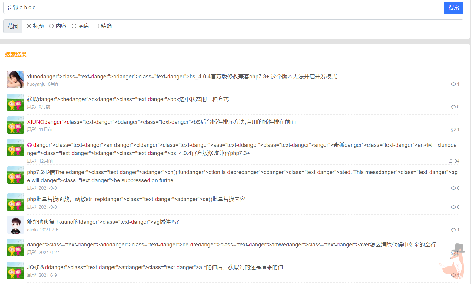 研究了下但是搞不懂什么问题 ,只要关键词里带这个函数里面的 HTML代码 就会出现上面的问题 如 "奇狐 span" 或者 "奇狐 class" 等等...以此类推