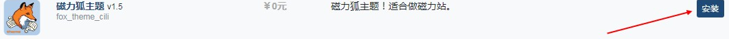 2.后台找到磁力狐主题 v1.5点击安装【如果是已经安装好的状态,那么请先卸载,再安装,否则不执行SQL会出错;如果点击卸载却不能卸载,那么说明你空间权限有问题,XIUNOBBS插件全部是可以卸载的。】